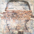 This 10"X10" original work combines photographic transfer and mixed media on salvaged corrugated iron, offering a richly textured surface.